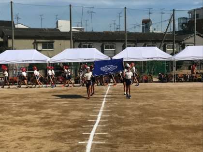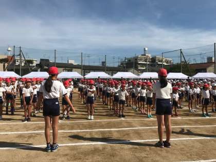 校旗を先頭に、優勝旗、準優勝盾と続き、6年生から1年生までが力強く行進しました。
