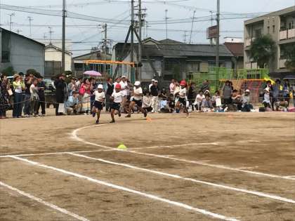 1年生は「らん♪ラン♪らん♪」。小学生になってはじめての徒競走。一生懸命走る姿にも声援と拍手が送られていました。