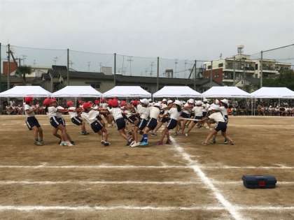 3年生の団体競技は「引け!力のかぎり!」。競技では、プログラム名通りの大熱戦が繰り広げられました。中には、2分以上の大勝負も。お互いに力を出し切ったすばらしい競技でした。