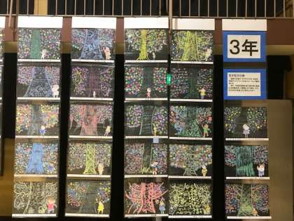3年生は「モチモチの木」と「ランプシェード」でした。「モチモチの木」は黒い画用紙にモチモチの木をかき、それを見上げる豆太を別に作って貼り付けました。「ランプシェード」はペットボトルを芯にして紙粘土でまわりを作り、いろいろな色に光るLEDランプの明かりがもれる窓を開けました。