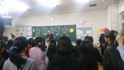 9日の土曜日、大阪市立西高等学校で「イングリッシュデー」が行われました。これは、毎週学校に来られている外国人の先生たちと一緒に歌ったり、ゲームをしたりして英語に親しもうという催しで、年に2回行われています。本校からは、今回初めて2名の児童が参加しました。最初は緊張した面持ちでしたが、だんだんと慣れ、楽しく過ごすことができたようです。