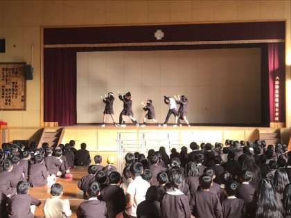昨日の集会は「かくし芸大会」の最終回でした。2年生のバク転や側転などの大技から始まり、音楽とけん玉のコラボやTTダンス、ものまね、ボイスパーカッション、バンド演奏、オタ芸ダンスなどバラエティ豊かな集会となりました。特に、6年生のオタ芸ダンスには2人の先生も加わわり、大いに盛り上がりました。