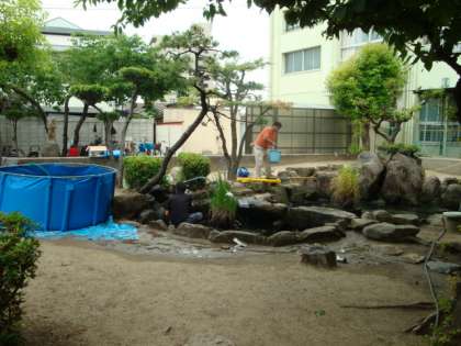 きれいにしていただいた後は、創立100周年に向けて鯉を飼う予定です。
