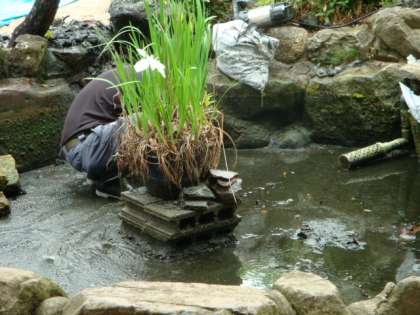 今日からふくふくの池をきれいに整備していただいています。