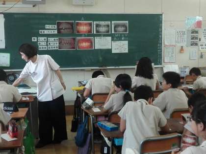 6年生では、歯・口の健康を通して、心身の健康の自己管理の向上をはかることを重点にしています。