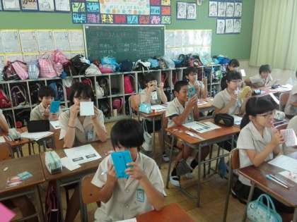 ほとんどの児童が朝晩きちんと歯磨きをしていました。ただ、歯垢チェックをすると磨き残しが見つかっている児童もいます。