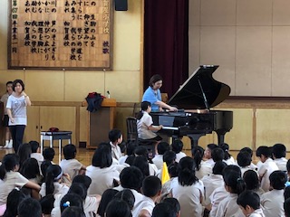 2年生は、カントリーロードをピアノで演奏しました。とてもきれいな音色で、みんな聴き入ってました。