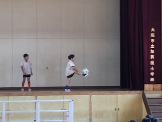 3年生は、サッカーのリフティング対決をしました。日頃の練習の成果を発揮し、すごく迫力のあるリフティングでした。