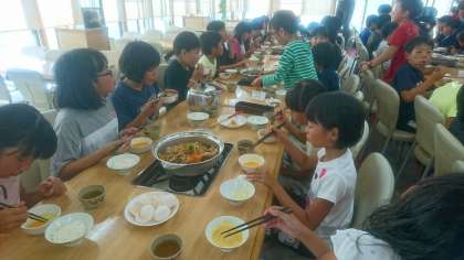 宿舎での最後の夕食、メニューはすき焼きです。昨日の鴨鍋に勝る大人気でした。また、ちょうど今日が誕生日の子がいて、サプライズのお祝いもあったそうです。こうして素敵な思い出が増えていくのですね。