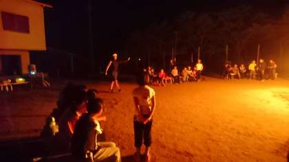 おはようございます。昨夜のキャンプファイヤは大いに盛り上がり、予定時間を延長して実施したそうです。その模様は、お家でたっぷりとお聞きください。