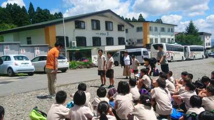 閉舎式を終え、子どもたちは大阪へと向かうバスに乗車。予定より少し早く、12時45分ごろにハチ高原を出発しました。