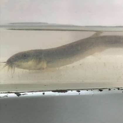 水槽に移してみるとどじょうでした。いつから居るのか分かりませんが、池に戻すと直ぐに泥の中にもぐっていきました。これからも元気でいてください。