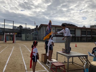 運動会の全体練習が始まりました。本番と同じファンファーレ、紙雷管のパンパーンの音。いよいよ、運動会が近づいてきたなと感じる瞬間です。