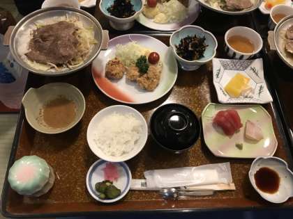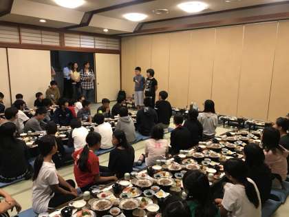 ボリューム満点の夕食が始まりました。みんな元気で、もりもりと食べているそうです。