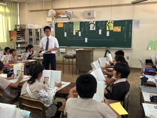 昨日の5時間目に5年2組で国語科の授業研究が行われました。