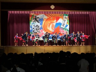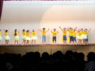 児童集会で子ども文化祭を控えた子ども会のみんなが踊りを披露してくれました。