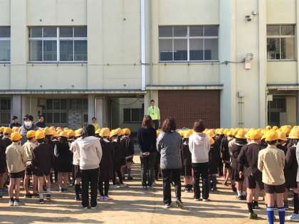 昨日、今年度最後となる全学年そろっての児童朝会がありました。校長先生からは、明日の卒業式を控えた6年生にはなむけの言葉が、1年生から5年生には新しい学年での頑張りを期待する励ましの言葉が贈られました。
