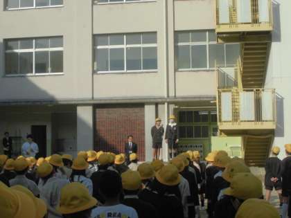 校長先生からはあいさつについての話がありました。また、運動委員会の児童からは17日から行われる「なわとび週間」についての連絡がありました。月曜日の朝ですが、子どもたちは姿勢よく話を聞くことができていました。