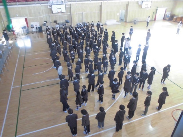 臨時児童集会で、来週に行う「卒業お祝い集会」のリハーサルを行いました。司会の言葉やお楽しみのゲーム、贈る歌、花道の隊形など、当日の流れを一通り確認しました。どんなお祝い集会になるか、とても楽しみです。