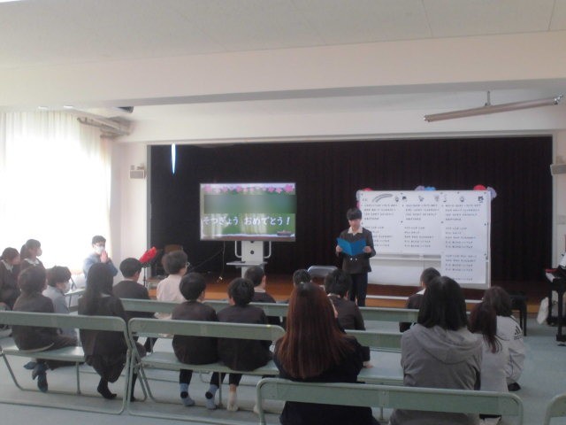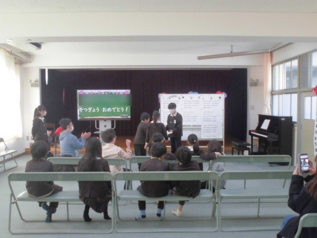 ひまわりタイムに、6年生を送る会を行いました。在校生からの言葉や、みんなで楽しむゲーム、歌のプレゼントなどを通して、6年生へ感謝の気持ちを伝えました。会場は終始あたたかい雰囲気に包まれ、思い出に残るひとときとなりました。
