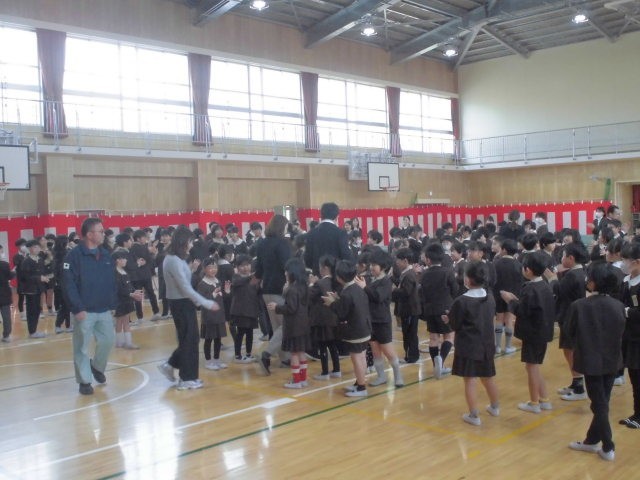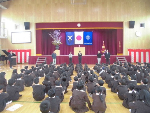 修了式の後には、今年度末で転勤される教職員の方々を、全校児童で温かい拍手をもって見送りました。