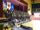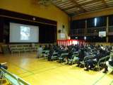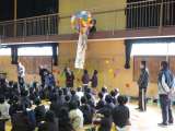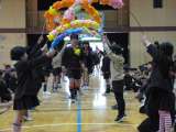 実行委員によるはじめの言葉のあと、くす玉を割り、在校生から6年生へのお祝いの言葉...