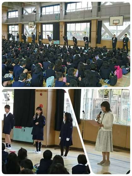この後に、新転任の教職員の紹介と転入生の紹介、学級担任等の発表をしました。新しい担任の先生、新しい学級のお友達とこれから1年間楽しく学び、力を伸ばしていってほしいと願っています。(*^_^*)