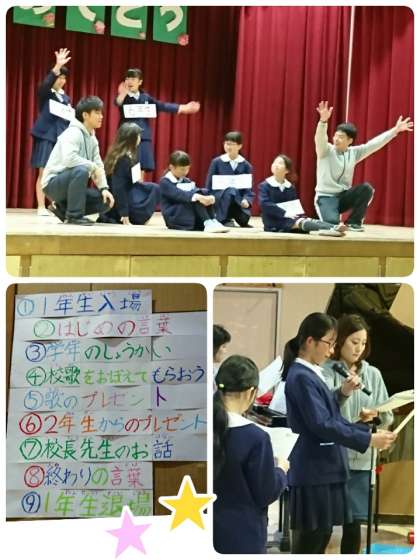 朝から、「入学おめでとう集会」をしました。児童会の子ども達が司会の係になり、上手に進行することができました。