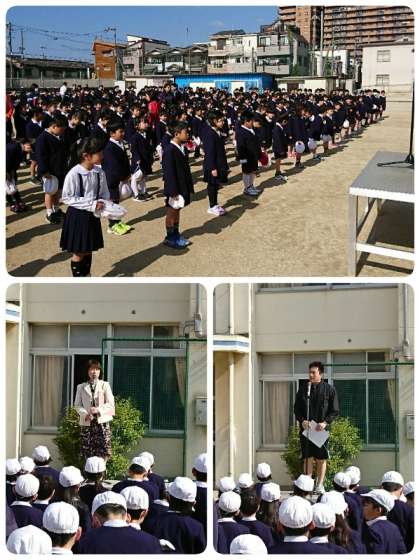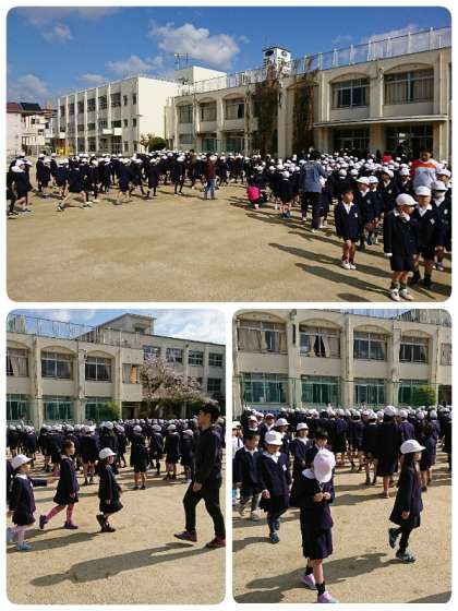 今日は、新しい学年になって運動場での初めての児童朝会でした。並ぶ場所や教室への戻り方も確認しました。