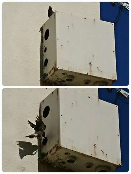 校門のすぐ近くの今は使われていないボックス。しばらく見ていると、親鳥がせっせとエサを運んでいます。親鳥がボックスの中に入るとヒナの鳴き声が大きくなります。毎年このボックスで何羽のヒナが巣立っていくのでしょうか?しばらくは、子育てにがんばる親鳥の姿が楽しめそうです。
