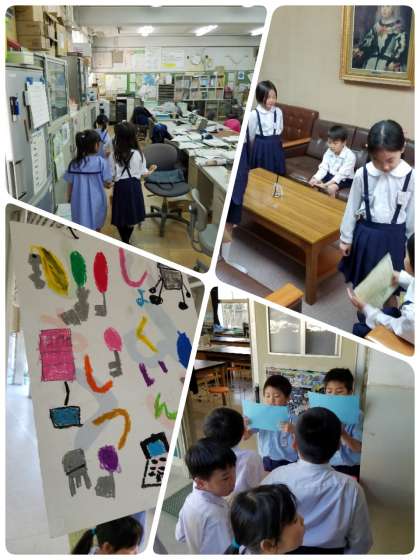 2年生が、1年生に校内を紹介する「学校探検」がありました。1年生に各教室が何をする部屋なのかを説明したり、職員室への入り方を教えたりしていました。お兄さんお姉さんに成長した姿を見せていました。