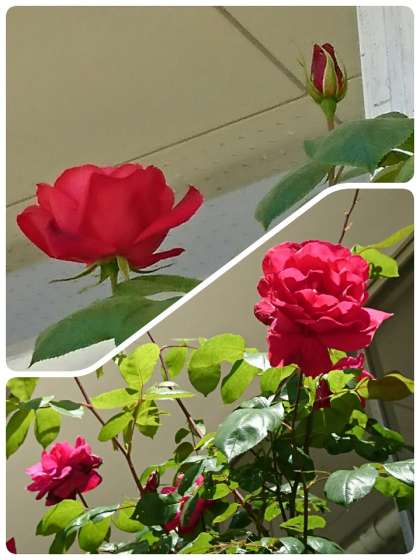 今は、大輪のバラが次々と開花しています。とってもきれいな真紅のバラで、つぼみもいっぱいついています。休み時間に子ども達も「きれい〜!!」と観賞しています。