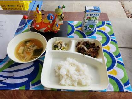 今日の給食は、ごはん、牛乳、プルコギ、とうふのスープ、チンゲンサイともやしのゆずの香あえでした。プルコギは、たれが甘くて、牛肉や玉ねぎ、にらとよく合っていました。とうふのスープは、やきぶたやえのき、わかめなどが入っていておいしかったです。チンゲンサイともやしのゆずの香あえは、さっぱりしていました(^-^)