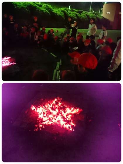 晩になると、昼間の暑さがうそのように、気持ちのよい風が吹いています。夏の大三角や北極星、北斗七星もよく見えました。住吉川小学校のキャンプファイアにも、星が降ってきました。
