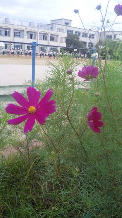 コスモスの花がきれいに咲きました。子どもたちは運動会の練習に頑張っています。9月28日(日)は運動会です。多数、ご参加ください。