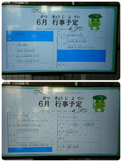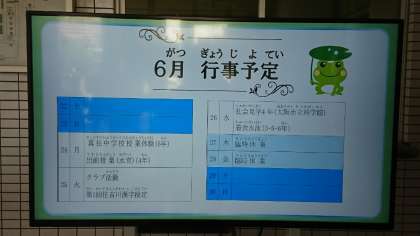 6月3日(月)、今日の予定です。今日から6月の行事もデジタル掲示板でお知らせしています。