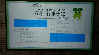 6月4日(火)、今日の予定です。追加で「3年 栄養指導」と「5年 米づくりJA出前授業」があります。