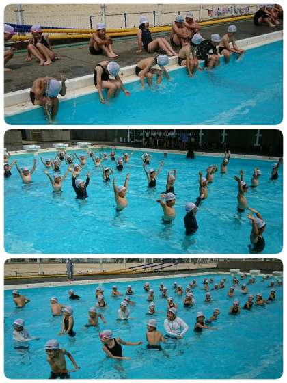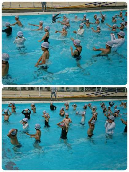 さすが3年生になると、さっと先生のお話が始まると注目。静かにお話が聞けます。その分さっと水慣れをして、泳ぐことができました。しっかり練習してたくさん泳げるようになってほしいです。