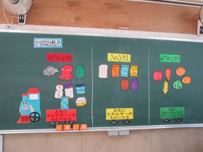 いろいろな食べ物の仲間わけもしました。夕食を食べている時にでも、今日の晩ごはんを見ながら質問してみてください。きっといろいろ教えてくれることだと思います。