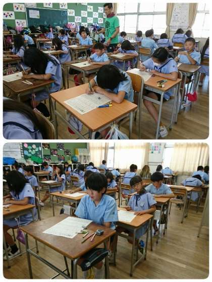 漢字検定の間は、シーンと静まり返っていました。子ども達の真剣さが伝わってきます。