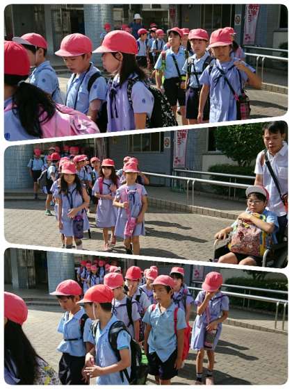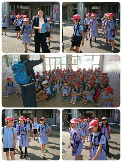 4年生が大阪市立科学館へ向けて出発しました。にこにこうれしそうです。