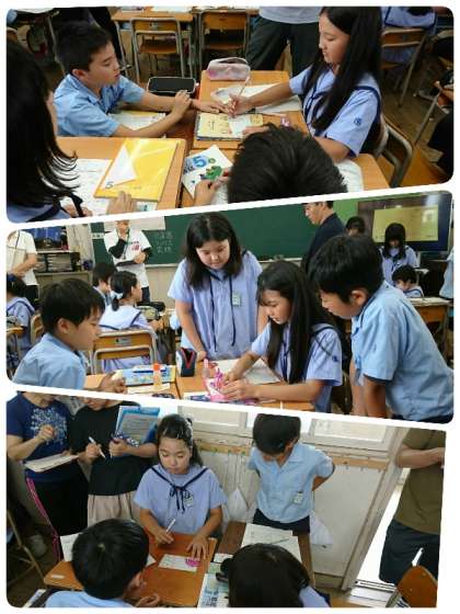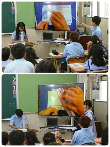 今日の学習の内容は、「形も大きさも同じ図形を調べよう」の「合同な三角形をかき、かき方を説明することができる」ことです。子ども達は試行錯誤しながら、どの辺の長さを、どの角の大きさをかくと合同な図形がかけるのか、思考を深めることができました。次時の学習も楽しみです。