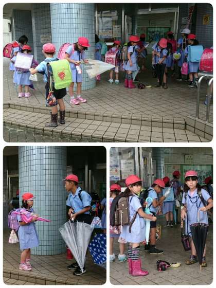 雨の日の玄関前では、子ども達が傘の始末をきちんとしていますよ。