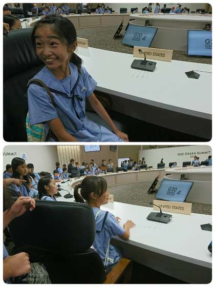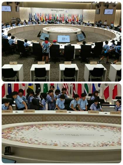 各国の首脳が集まった本会議場やエントランスなどを見学しました。