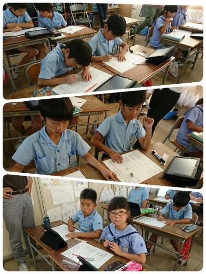 4時間目に3−2で公開授業を行いました。単元は、「漢字の組み立てと意味を考えよう」でした。今日は、漢字の部首「へん」「つくり」「かんむり」についての学習です。今までに学習した漢字を思い出しながら同じ部首を持つ漢字集めをしました。45分しっかり集中して取組んでいました。学ぶ姿勢が育ってきています。