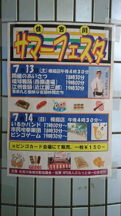 7月13日(土)と14日(日)に「住吉川サマーフェスタ」が加賀屋公園で開催されます。子ども達には木曜日に金券を渡しています。ご家族でもご参加ください。