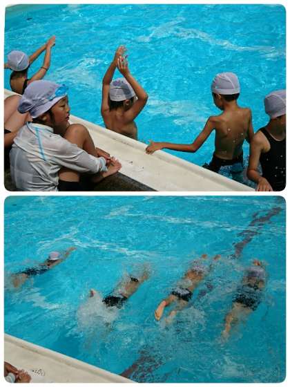 早朝に大雨警報が出ていましたが、2時間目にはカラッと晴れて2時間目には3年生がプールで楽しそうに水泳学習に取組んでいました。