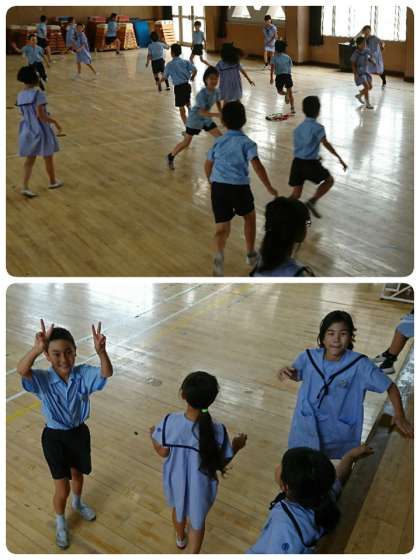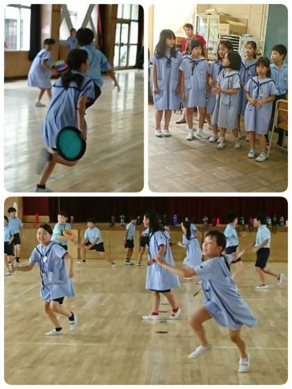 講堂でドッジビーや鬼ごっこをしている学級もありました。