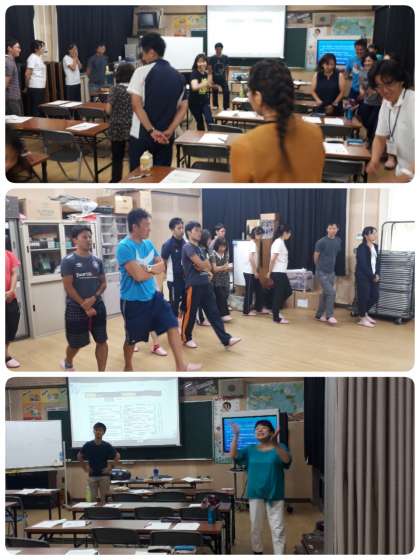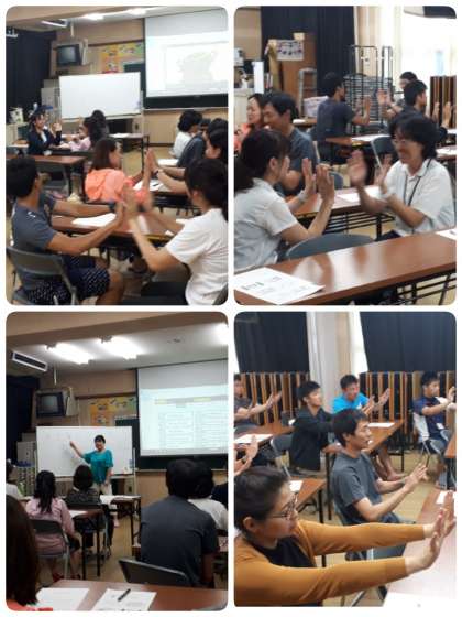 研修は「英語タイム」で実践できる内容で、みんな楽しみながら参加していました。
