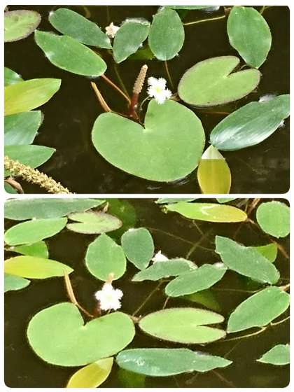 今年もメダカ池にガガブタ(鏡蓋)の花が咲いています。5つの花びらがあり、花びらの周辺は細かくさけていて毛が生えたように見えています。